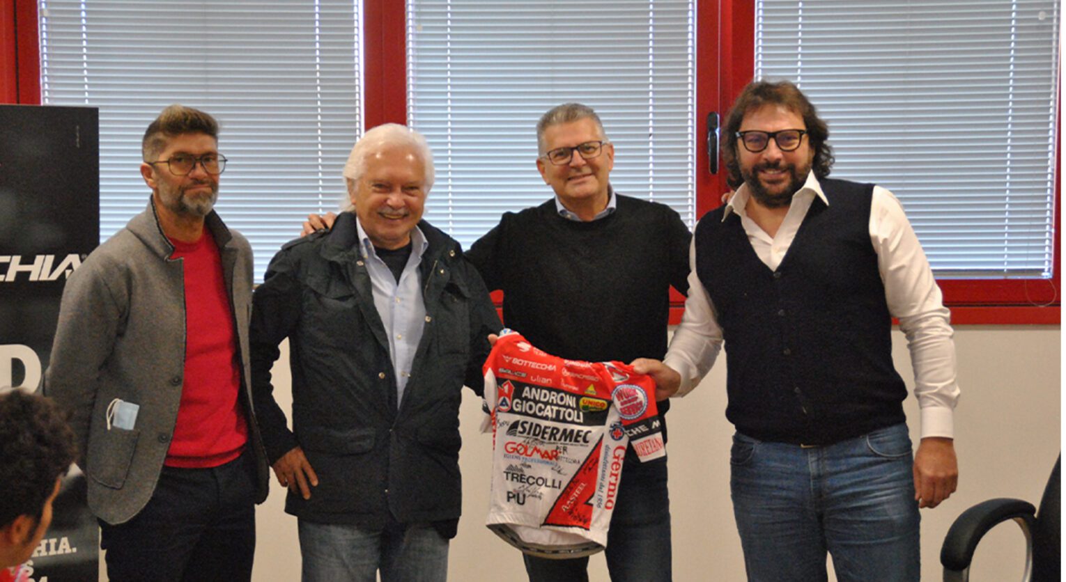 Per l’Androni Giocattoli, anche il 2021, come d’altronde anche le stagioni precedenti, è andato in archivio caratterizzandosi come un anno ricco di soddisfazioni dal punto di vista dei risultati sportivi. E proprio in occasione di questa visita, il team ha consegnato all’azienda veneta (che fornisce le biciclette) le maglie simbolo dei successi di questa annata prolifica.