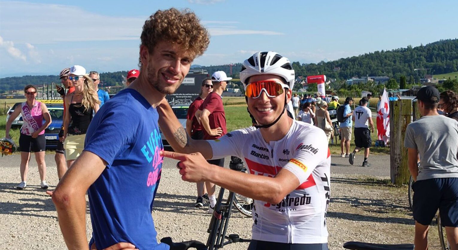 Le storie ciclistiche di Simon e Gino si erano intersecate nel 2018, al team Iam Excelsior, squadra continental svizzera. Mader vi sostò poco, passando l’anno successivo all’NTT Dimension Data, ma bastò quella stagione per legarli in una profonda amicizia. «Abbiamo corso molto insieme, il che significa condividere camere d’albergo, le emozioni e le paure prima della gara, le gioie o le delusioni del dopo e in mezzo tante chiacchiere e soprattutto la storia di una bici…».