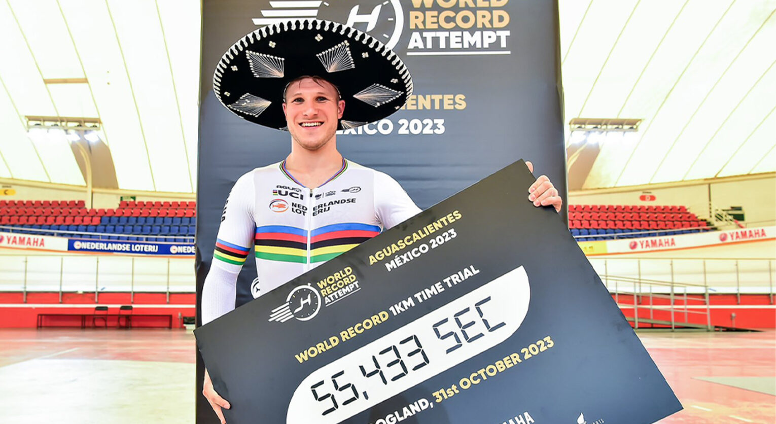 55”433. E’ il nuovo record del mondo nel chilometro da fermo, stabilito sfruttando appieno i benefici dell’altura di Aguascalientes (Messico) da parte di Jeffrey Hoogland– Il trentenne olandese da tempo cercava questo primato, ma non aveva mai trovato il tempo per curare tutta la lunga preparazione e la gestione della trasferta. Hoogland ha abbassato il precedente primato di quasi 9 decimi. Non contento di ciò, due giorni dopo si è preso anche quello sui 500 metri, in 24”564 con due decimi di margine sul tempo siglato dal britannico Hoy a La Paz nel 2007, mancando però dopo ben 3 tentativi quello sui 200 metri, 9”100 che resta a Nicholas Paul di Trinidad per appena 3 millesimi.