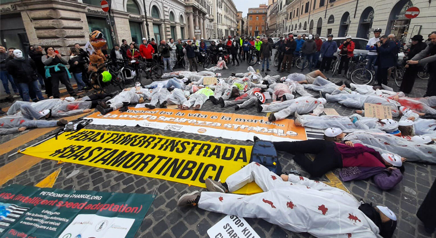 A forza di abbozzare e non dargli troppa importanza, si finisce col dargli ragione. Il riferimento è alle parole del consigliere comunale di Milano che si è permesso di dire che i ciclisti, ammazzati da automobilisti e camion sulle strade cittadine, se la sono cercata e che a lui non dispiace più di tanto. Dice che c’è bisogno di parcheggi e non di piste ciclabili, dimostrando di non aver capito che le città andrebbero svuotate dalle auto e non riempite (in apertura, una protesta contro il nuovo Codice della strada. Foto FIAB).