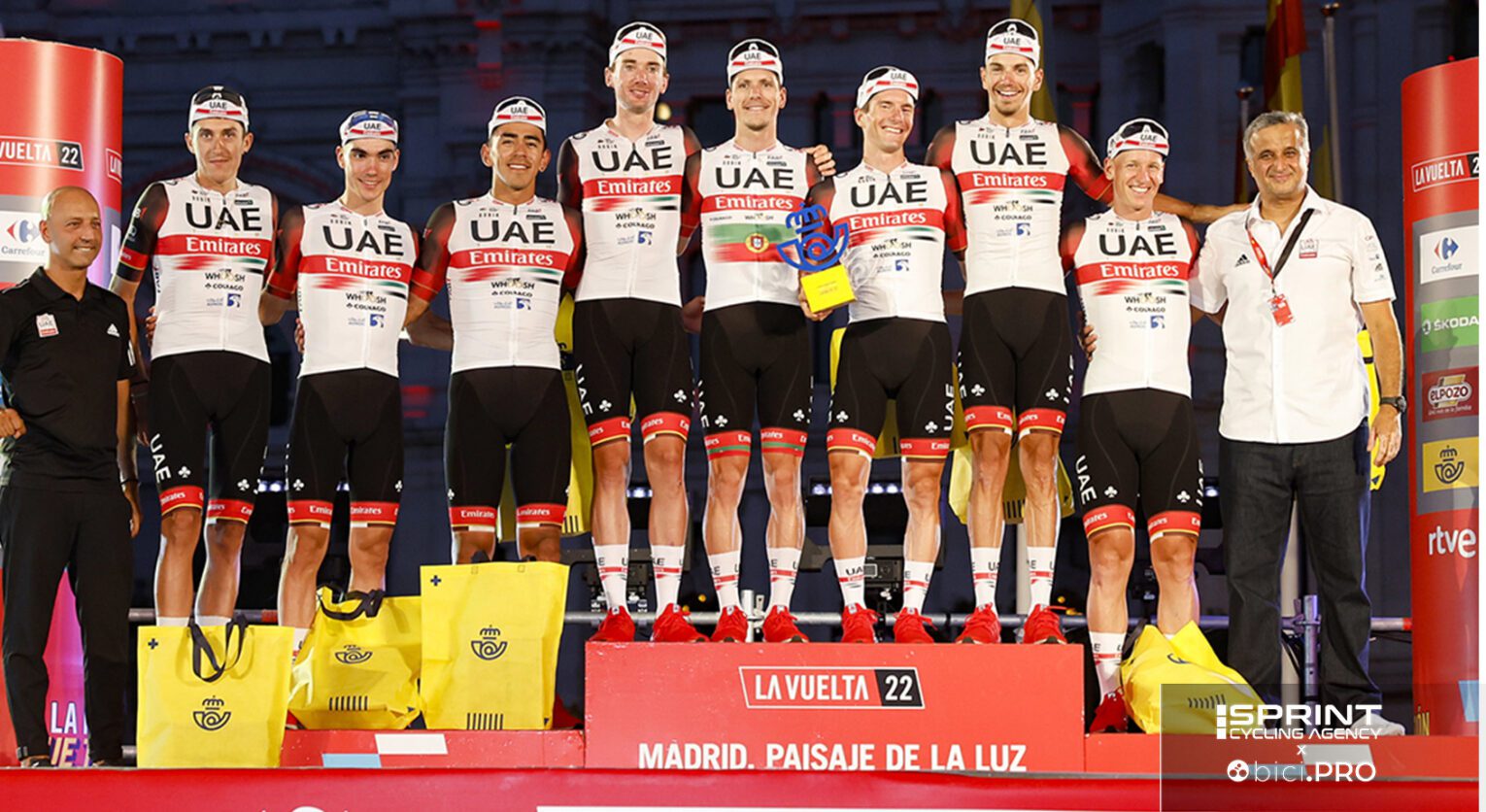 Juan Ayuso sul podio, Joao Almeida nella Top 10 (e Jan Polanc poco distante), i successi di tappa di Marc Soler e Juan Sebastian Molano proprio nell’ultima tappa, il trionfo nella classifica a squadre con oltre un’ora di vantaggio. La Vuelta è stata un viaggio fortunato e il fatto che la sua conclusione sia arrivata in contemporanea con il trionfo di Pogacar a Montreal ha un che di simbolico.