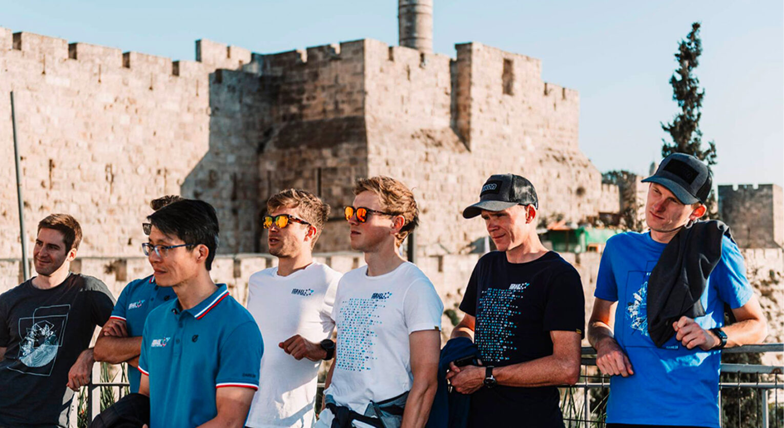 Durante il ritiro, poche uscite su strada con sponsor e tifosi. Si intravede Nizzolo Froome e Woods a spazzo nel mercato di Gerusalemme: luogo magico di profumi e colori Il deserto è una dimensione nuova per i corridori europei Non poteva mancare la visita al nuovo velodromo di Tel Aviv: froome tiene banco In mountain bike, su piste che un tempo erano percorse dai pastori beduini, oggi confinati in piccoli campi Anche il kayak fra le attività alternative proposte durante il training camp