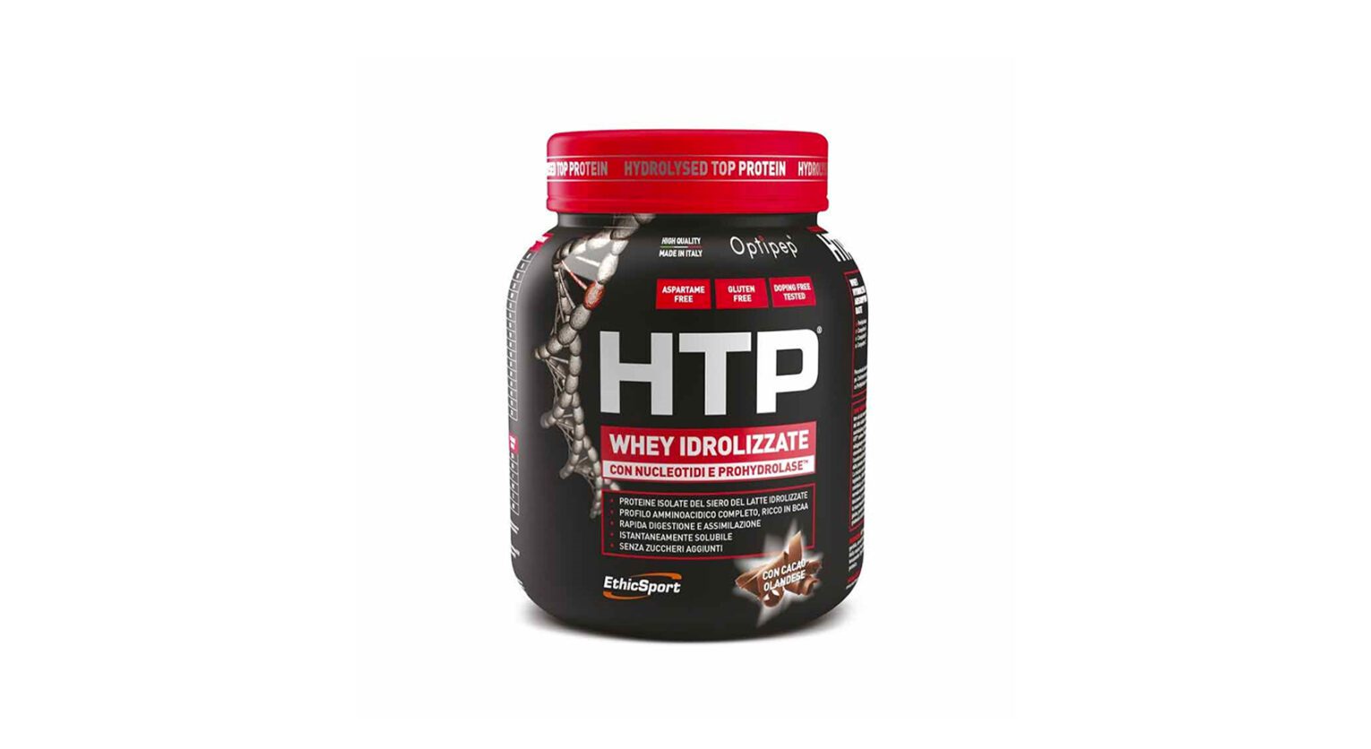 HTP assicura una rapida assimilazione, grazie all’alta concentrazione di polipeptidi idrolizzati. Contiene ProHydrolase, una miscela esclusiva di enzimi proteolitici, sviluppata per coadiuvare la digestione e l’assorbimento di miscele proteiche concentrate. La presenza di nucleotidi purissimi contribuisce a migliorare l’assetto nutrizionale della miscela proteica. La speciale tecnologia di idrolisi delle proteine isolate del siero del latte è garantita dal marchio Optipep. La miscela contiene inoltre un’elevata concentrazione di BCAA