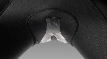 Molta, anzi moltissima attenzione è stata concentrata dai tecnici TeoSport anche alla realizzazione della base del fondello Mengoshi. E’ una zona delicatissima che va a diretto contatto con il corpo. Nella parte posteriore la particolarità della “V rovesciata” garantisce difatti una centratura ottimale del fondello una volta indossata la salopette. Nella parte anteriore della base, invece, notiamo uno speciale reticolato di linee/canali per modellarsi perfettamente alla forma anatomica del corpo.